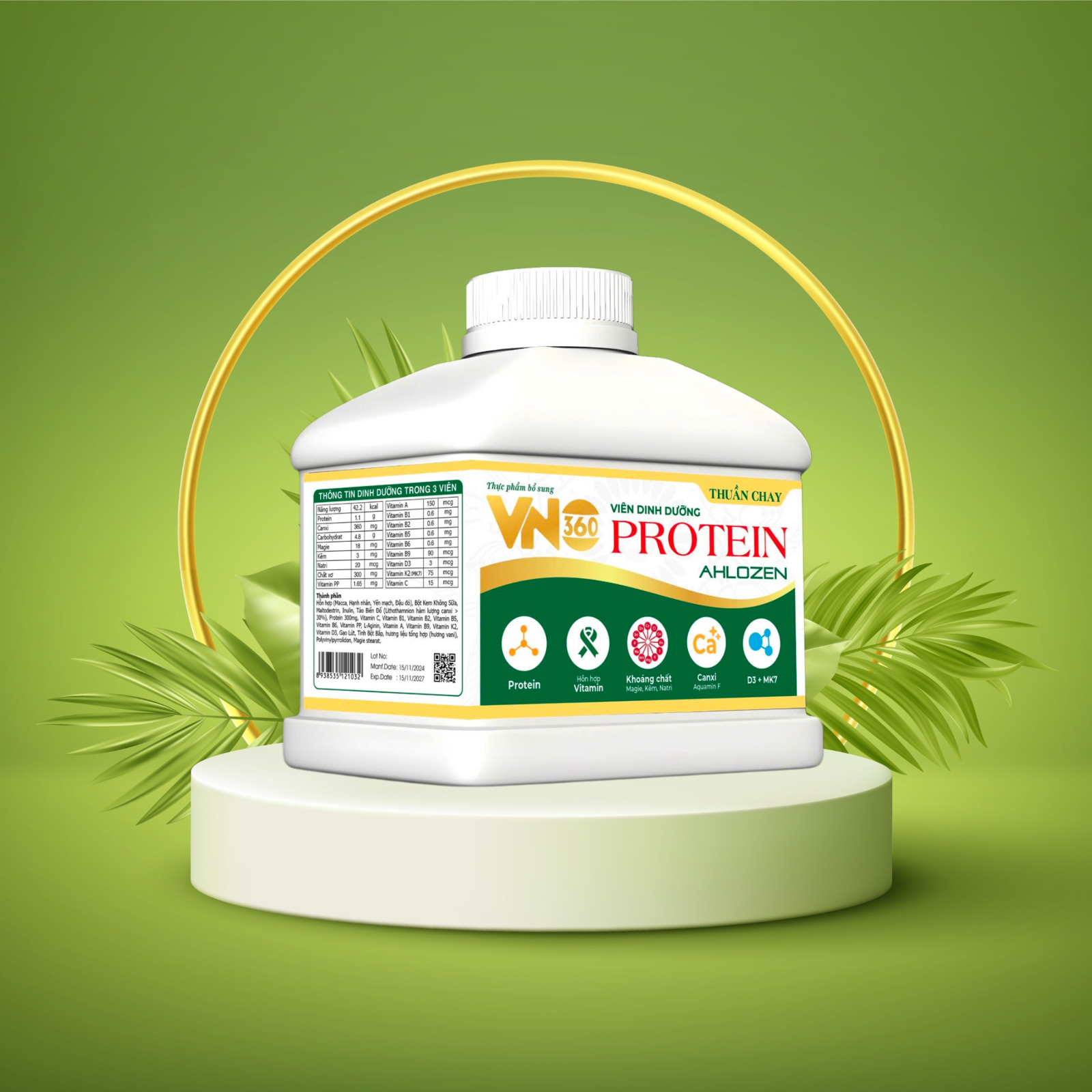 Viên dinh dưỡng ăn liền VN360 với thành phần thuần chay, 100% đạm thực vật từ các loại hạt cao cấp (Bắp, Macca, Óc chó, Gạo lức, Đậu đỏ, Yến mạch), bổ sung hoạt chất MK7, Canxi hữu cơ, D3 cùng 10 vitamin và 72 khoáng chất thiết yếu, là lựa chọn hàng đầu giúp bổ sung dinh dưỡng cân đối, đủ chất và lượng cho cả gia đình.