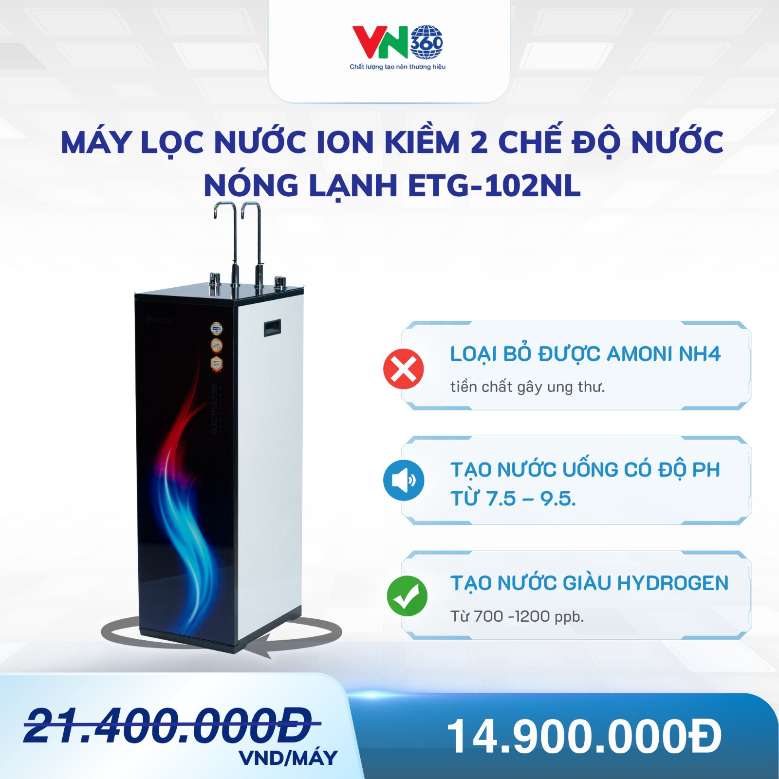 Máy Lọc Nước Ion Kiềm 2 chế độ nước nóng lạnh ETG-102NL
