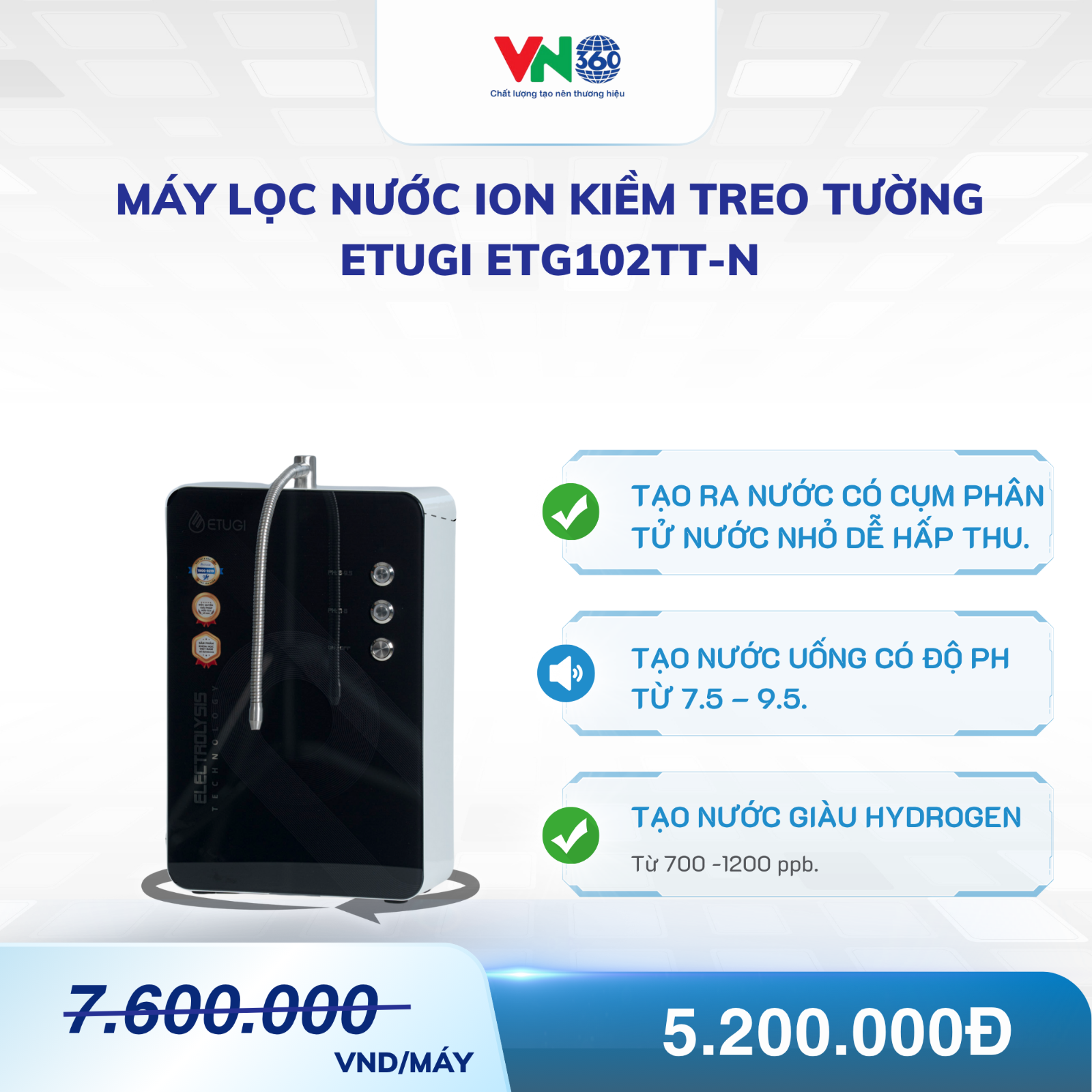 Máy Lọc Nước Ion Kiềm Treo Tường ETUGI ETG102TT-N