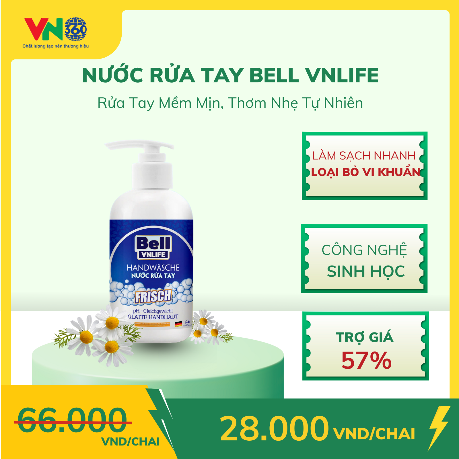 Khác với nước rửa tay thông thường sẽ làm da tay khô ráp, bong tróc, lão hoá thì nước rửa tay công nghệ sinh học Bell có chứa thành phần propylene glycol thường được sử dụng trong mỹ phẩm, rất tốt trong vai trò cấp ẩm cho da và giải quyết tình trạng khô da và sạm da. Với các thành phần từ thiên nhiên, sản phẩm giúp da tay săn chắc, ngừa nếp nhăn hiệu quả, khôi phục lớp bề mặt da bị tổn thương, xử lý nếp nhăn, tình trạng da khô, nổi gân và các hiện tượng lão hóa. Nhờ ứng dụng công nghệ sinh học, sản phẩm hỗ trợ ngăn ngừa mất nước và kích thích sự tổng hợp các protein cấu tạo làm tăng mật độ lớp biểu bì trên da tay.